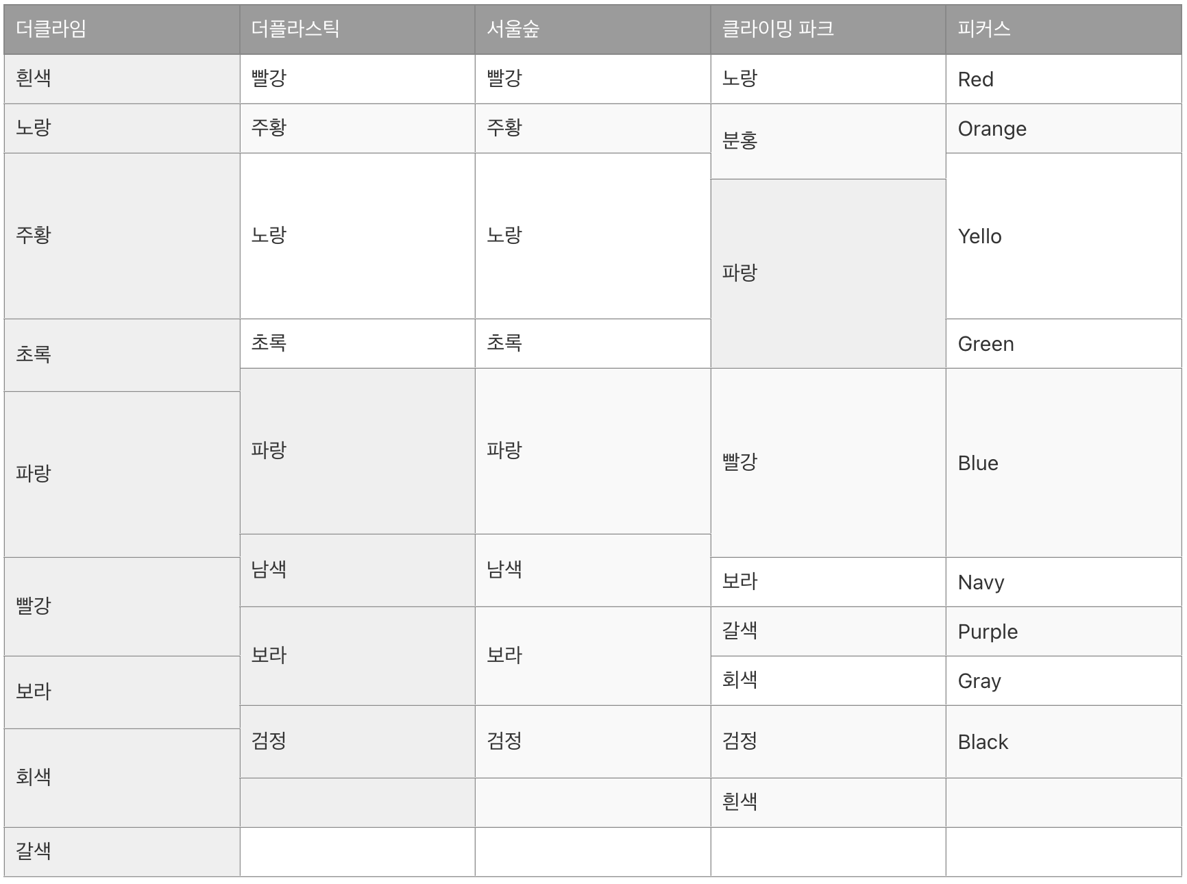 아래의 표는 지극히 주관적인 내용이니 참고만 하기 바란다